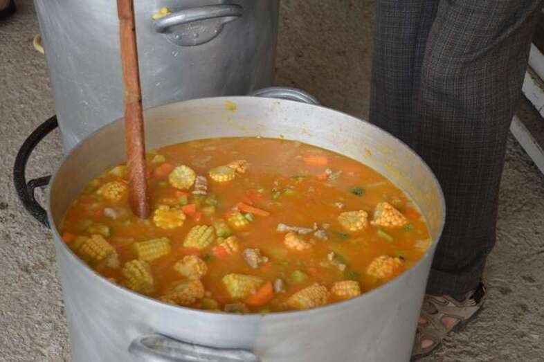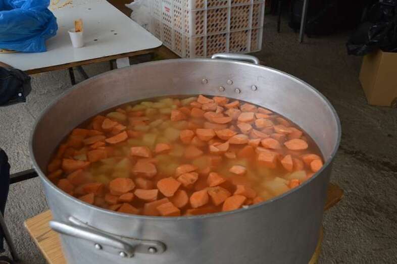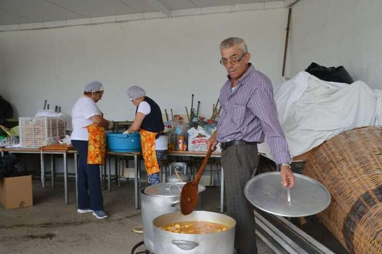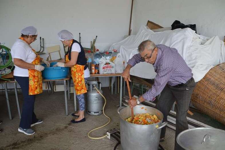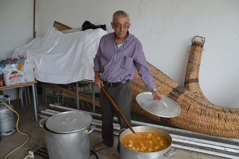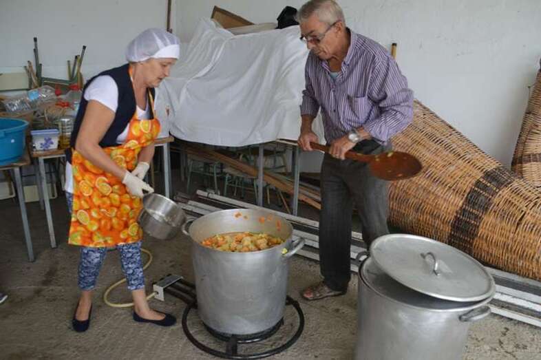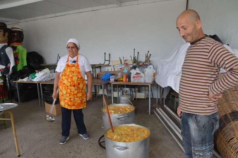 En dos grandes calderos, miembros del Patronato de Fiestas cocían a fuego lento desde primera hora de la mañana, en el solar anexo a la parroquia,  un sabroso potaje de berros que esta noche aliviará el cansancio de los cientos de peregrinos que acudan a ofrendar a la Inmaculada Concepción.