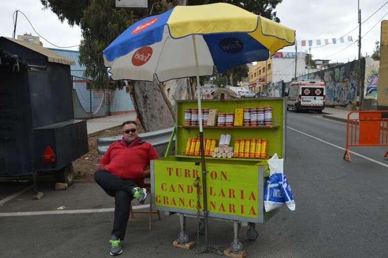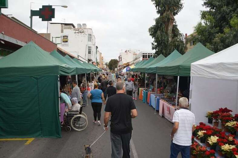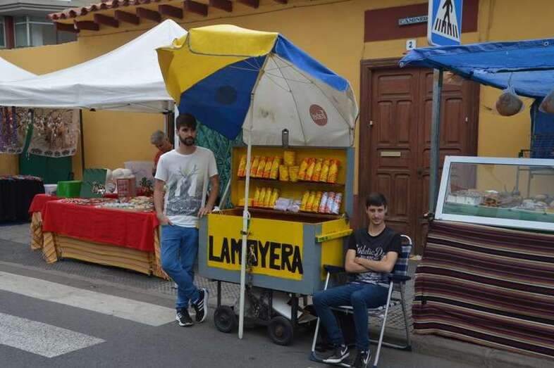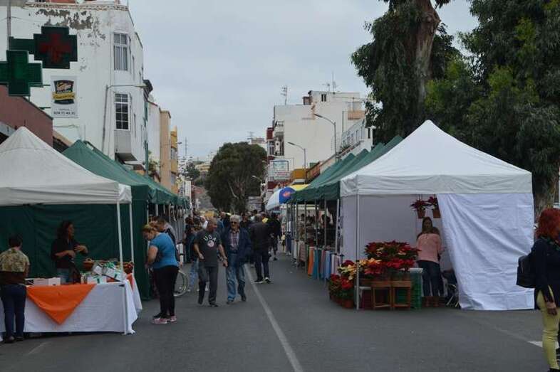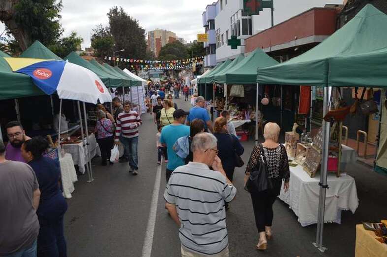 Hoy era el día grande la artesanía y por ello más de 20 puestos ocupaban la antigua carretera de Jinámar, a partir de la Casa del Caminero, en dirección hacia Marzagán. Las casetas ofrecen una amplia oferta de productos artesanales y alimenticios como ropa, bisutería, mermeladas, setas, flores o frutas, sin faltar por supuesto los puntos de venta de caña dulce.
