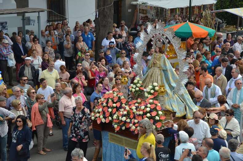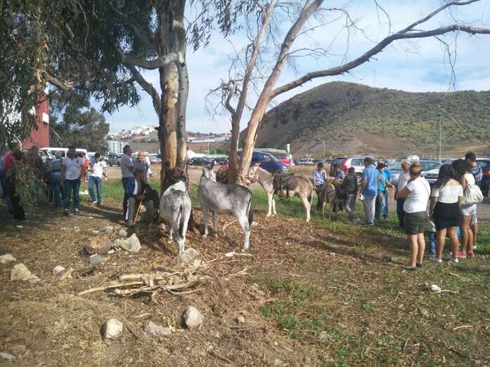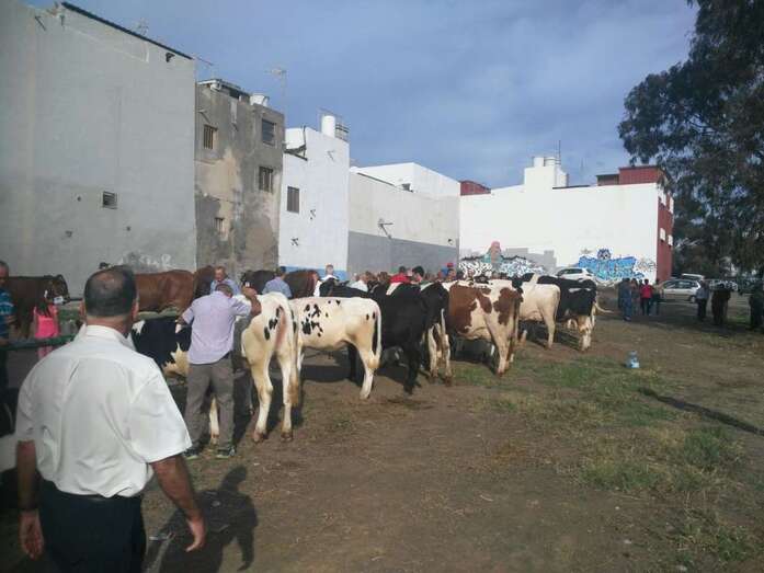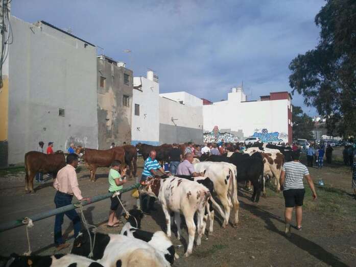 Telde.-  El casco de Jinámar fue en la jornada matutina de este jueves una fiesta. El buen tiempo acompañó el desarrollo de los actos lúdicos y religiosos, lo que animó a que el movimiento de visitantes y fieles fuera creciendo a media que discurría la jornada festiva, en la que la feria de ganado se convirtió en principal atractivo, aunque muchas personas aprovecharon el tiempo para pasear y adquirir productos típicos y degustar la caña dulce en las decenas de puestos instalados a ambos lados de la carretera general, cerrada al tráfico de vehículos.