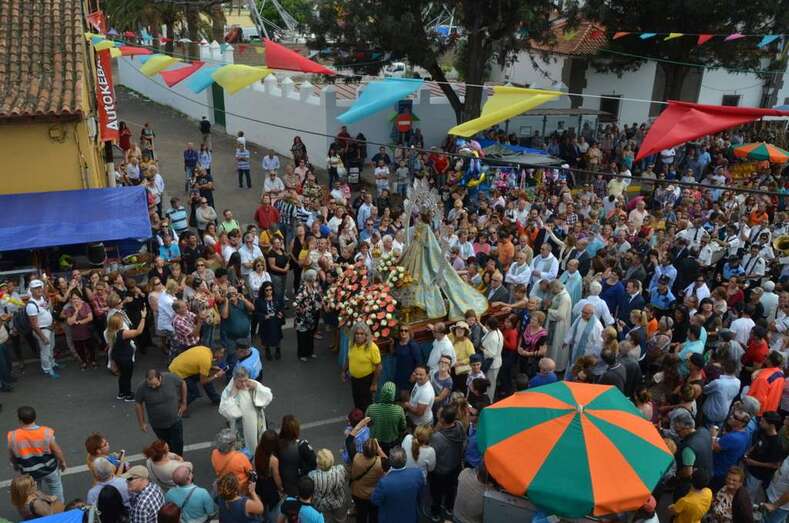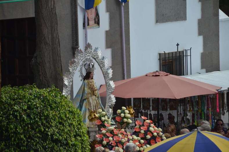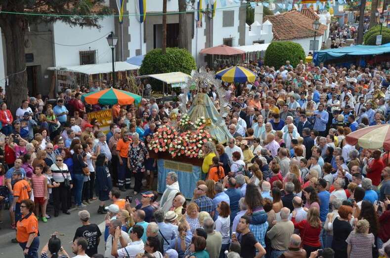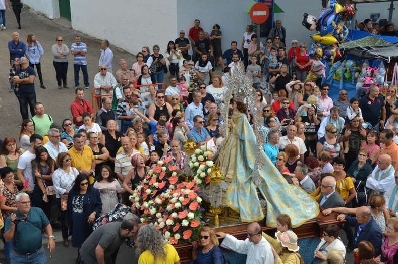 A medida que se acercaba las 13.00 horas, momento previsto para la salida del trono de la Virgen del antiguo templo de Jinámar,  personas de todas las edades se agolparon en sus inmediaciones para saludar a la Inmaculada Concepción en el inicio de la procesión, que estuvo acompañada de la Banda Municipal de Música y de una amplia representación de autoridades locales e insulares encabezada por la alcaldesa Carmen Hernández y conformada por el consejero insular Felipe Afonso El Jaber y los ediles Diego Ojeda, Celeste López, Marta Hernández, Agustín Arencibia, Sonsoles Martín y José Suárez.