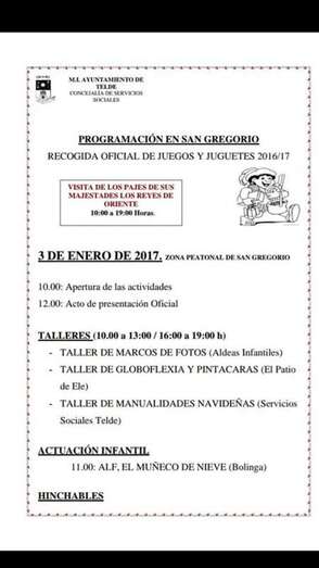 El próximo martes, 3 de enero, se celebrará en la zona peatonal próxima a la plaza de Los Llanos durante todo el día el acto oficial de recogida de juegos y juguetes, con talleres infantiles y actuaciones y la presencia de los pajes de los Reyes Magos