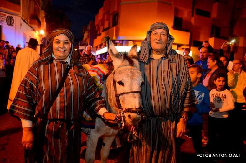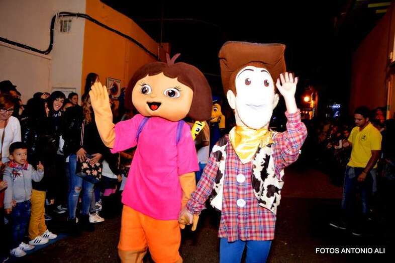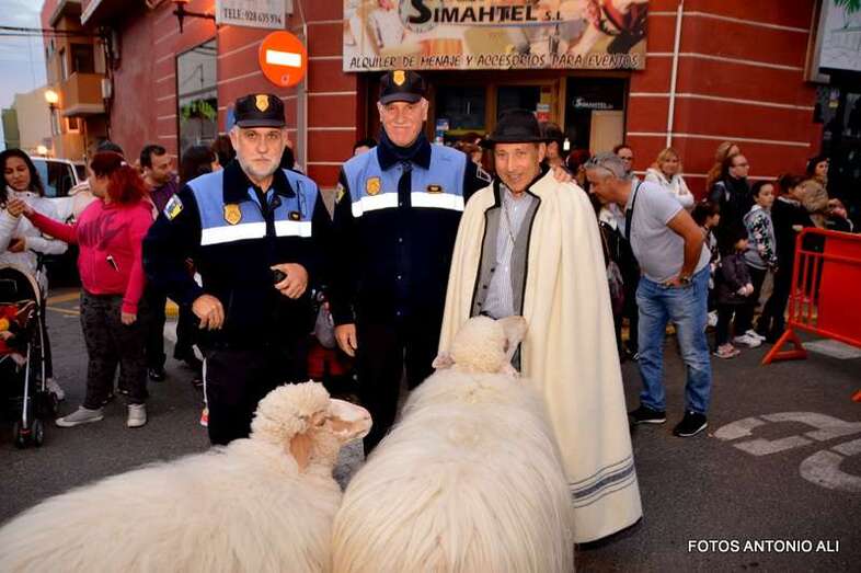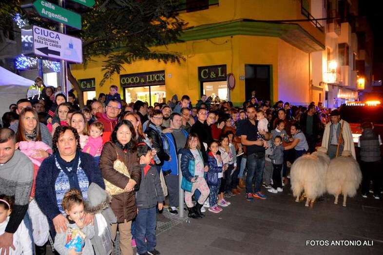 Tras él, pastores con sus rebaños, una pequeña escuadra romana, canarios y otros personajes que van desatando la euforia de la chiquillería a su paso por las calles del núcleo de Los Llanos. Tres carrozas de animación infantil, duendes, elfos, personajes de cuentos y dibujos animados, zancudos y pajes reales preceden a los tres carromatos en los que viajan Melchor, Gaspar y Baltazar, saludando a los pequeños y recogiendo las cartas de los más rezagados.