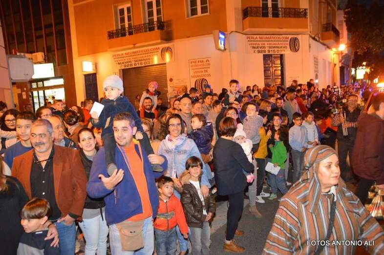 Telde.- La ciudad de Telde disfruta desde hace unos minutos de la Gran Cabalgata de Reyes. La comitiva arrancó pasadas las 18.45 desde el entorno del mercado viejo y ya discurre por el entramado comercial de Los Llanos, abriéndose paso entre la multitud de familias que han salido al encuentro de los tres magos de Oriente en una tarde-noche fría y con amenaza de lluvia.
