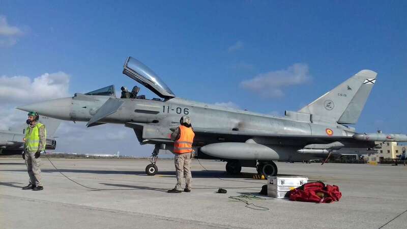 Cazas F-18 y Eurofighter Typhoon