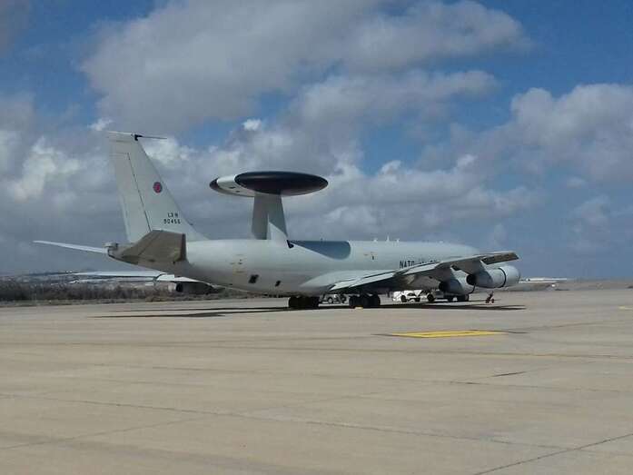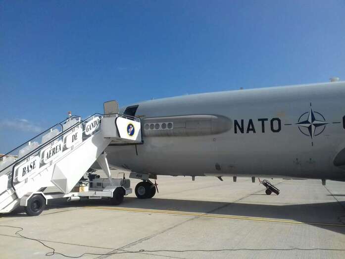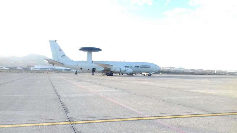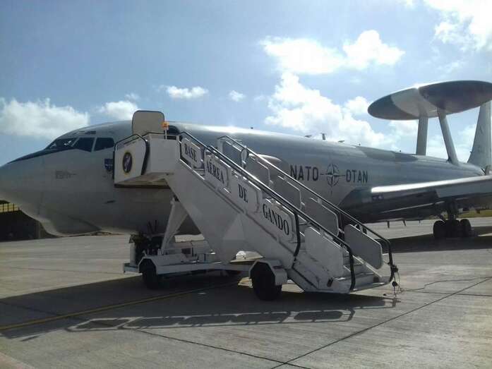 También ha tomado tierra en Gando un imponente avión cisterna italiano para reabastecimiento en vuelo. Aunque sin duda la estrella del DACT 2017 es el Boeing E-3 Sentry con la plataforma AWACS (Airborne Warning and Control System) de la OTAN. La aeronave más esperada y llamativa de cuantas participan en estas maniobras.