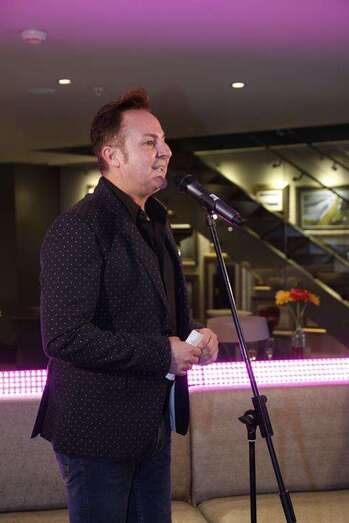 Fernando Méndez dirigió unas palabras a los presentes, destacando el compromiso personal que mantiene con estas fiestas y con la firma comercial que representa. Manifestó la gran ilusión que significa para él el que Assi vista la fantasía que ha confeccionado para la Gala del Carnaval de Las Palmas de Gran Canaria, que en esta ocasión llevará por título Hotel Royale.