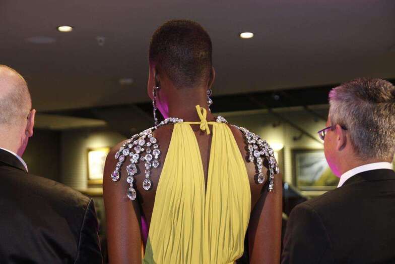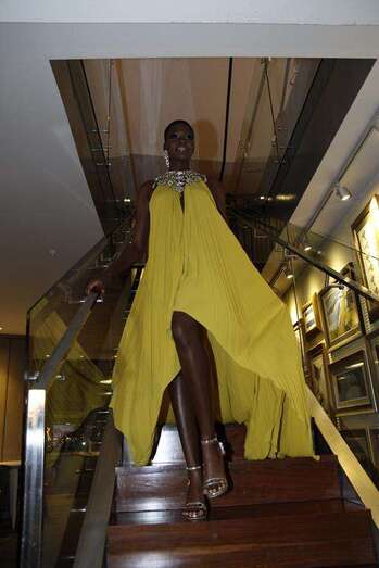 Assi Mbengue lucía un espectacular traje de color amarillo. Un collar de diamantes adornaba su cuello. Cuenta con 18 años y cursa estudios de Higiene Bucodental. Se ha formado como modelo en la Agencia Model's. El pasado mes de noviembre fue elegida nueva 'Linda España 2016', en el certamen nacional de modelos celebrado en Marbella.