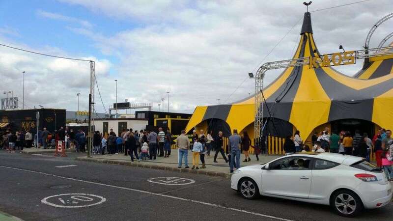 El circo Kaos ocupa una superficie de 1.140 metros cuadrados. Bajo su enorme carpa caben 980 personas. Y en su flota de trailers y caravanas viven 60 personas. Lleva un año girando por Canarias. A lo largo de 2016 visitó Tenerife, La Gomera, Fuerteventura y Gran Canaria. Ahora, tras su paso por la capital, vuelve a Telde.