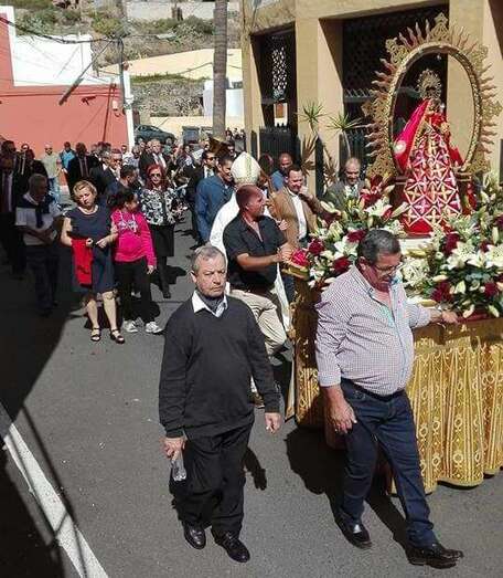 Telde.- La Virgen de la Candelaria salió este domingo en procesión por las estrechas y empinadas calles del núcleo poblacional de Tara. La comitiva partió del templo después de la misa de las 12.00 horas, que estuvo presidida y oficiada por el obispo de la Diócesis Canariensis, Francisco Cases Andreu. TA ofrece imágenes.