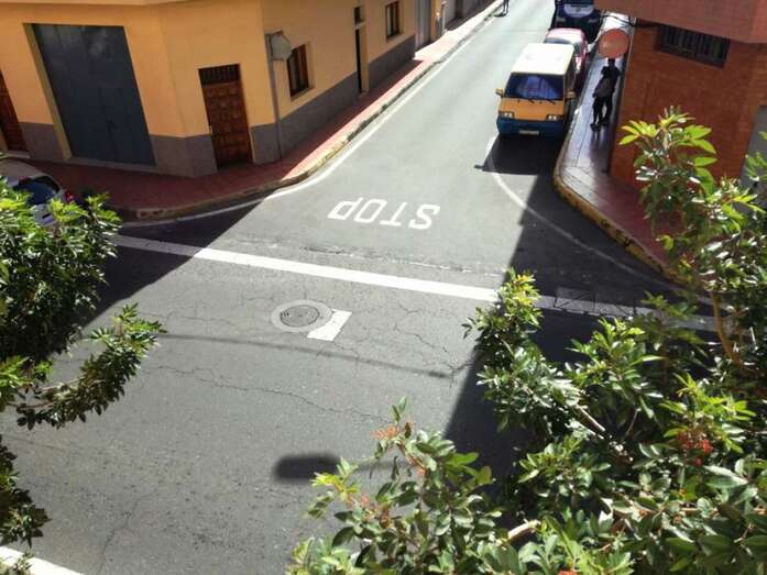 La señal horizontal se encuentra retirada unos centímetros de la vía principal, con los que los vehículos tienen que asomar sus morros más allá de la línea que marca el Stop para intentar salvar los puntos muertos. Circunstancia que ya ha provocado no pocos accidentes, denuncian los residentes de la zona.