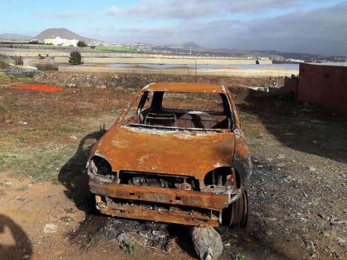 Telde.- El esqueleto de un vehículo totalmente calcinado y abandonado. Esta es la estampa con la que se encuentran a diario las personas que pasan por el diseminado de viviendas de Lomo Espino, junto a las instalaciones deportivas de Lomo Pollo.