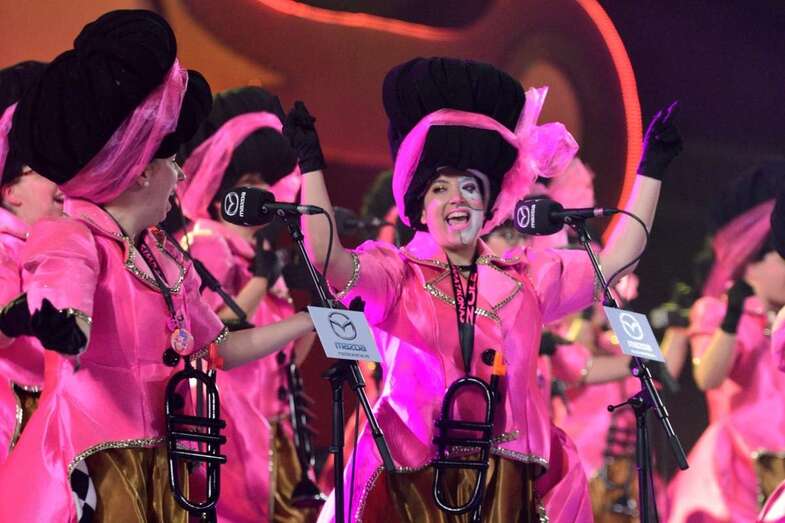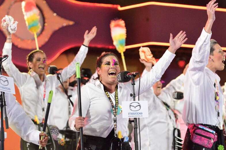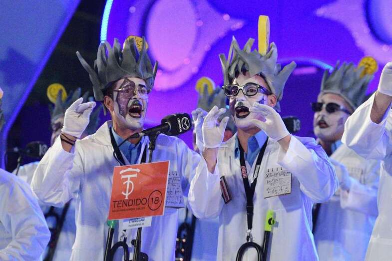 - Simpatikonas: Arropadas por un público totalmente entregado, las Simpatikonas han sido las primeras en subirse al escenario. En su estreno en el carnaval, las chicas pueden estar contentas con el trabajo realizado. Su primer tema, 'Hijos del verbo robar', ha servido para quitarse los nervios del primer año, mientras que en el segundo 'Con estas princesas se acabaron los cuentos', han conectado directamente con la afición, que se ha venido arriba. En general, han estado bien.
