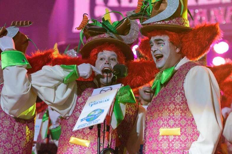 - Los Serenquenquenes: Al ritmo de 'soy lagartero...' llegaron los de Agüimes para dar mucha caña, demostrando una vez más estar a la altura. Con sus temas 'Serenqueboys' y 'Misterios en carnaval' aprovecharon para cantar sobre el turismo gay o el deporte canario. Aprobados con nota.