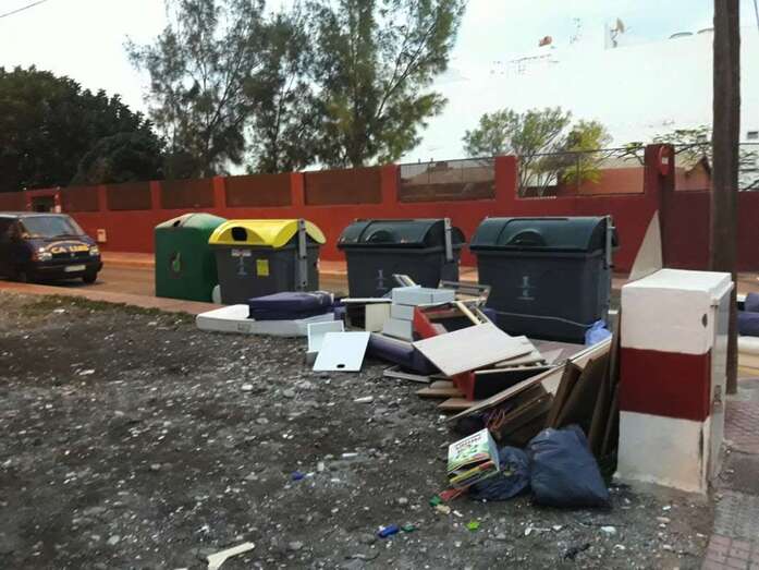 Asientos, colchones, maderas y otros desperdicios que desde hace unos días yacen en un solar abandonado junto a los contenedores de residuos sólidos urbanos ubicados en la calle Núñez de Balboa esquina con Vasco de Gama, esperando que algún alma caritativa se apiade de ellos y los retire definitivamente hasta algún punto limpio o vertedero.
