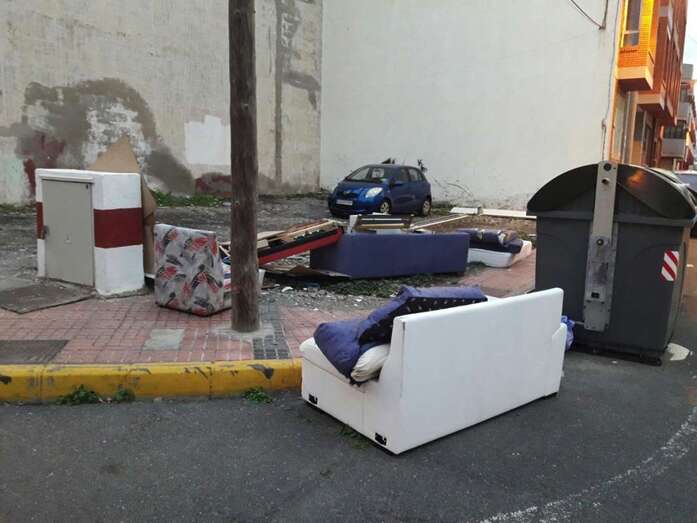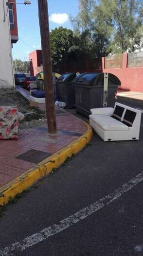 Telde.- No es Chester, el televisivo sofá de Risto Mejide. Sino el de un incívico vecino de Clavellinas que ha decido renovar el decorado de su casa y, ni corto ni perezoso, abandonó sus antiguos muebles en plena vía pública.