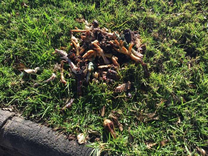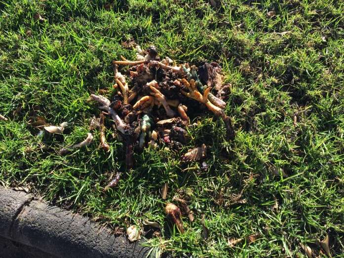 Telde.- Los vecinos de Arnao se han encontrado hoy con un desagradable regalo. Un montículo de patas y restos putrefactos de gallina que alguien abandonó sobre el césped de un jardín público ubicado entre la calles Ciega e Inspectora Farmacéutica María del Pino Suárez Lopez.