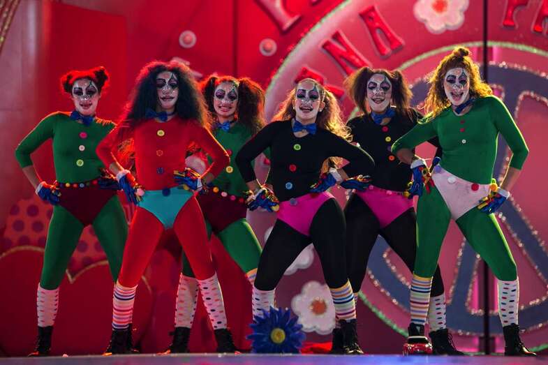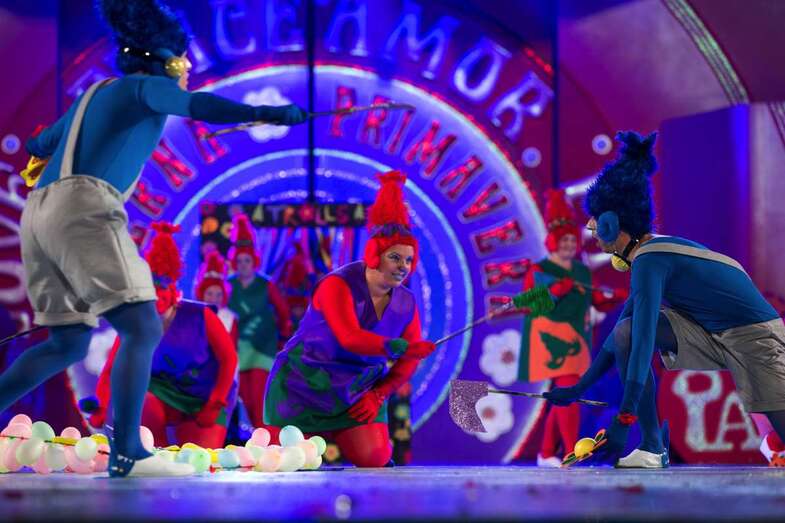 Por último, el tercer premio de interpretación de esta noche, que se pudo disfrutar durante cuatro horas, recayó en la comparsa Chiramay, de la Vega de San José. Sus 51 componentes bailaron el espectáculo Había una vez… con la fantasía Explosión de colores.