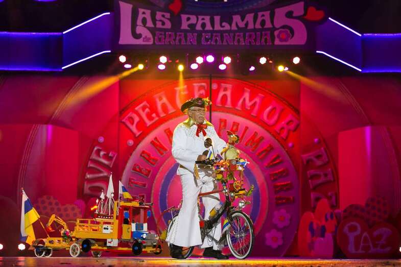 La locutora de Radio Las Palmas, Dulce María Facundo, fue la encargada de dar paso a los diez participantes inscritos en la categoría individual y a los doce de la categoría de grupo, en un concurso que contó con las actuaciones del conjunto musical Acuarela, el transformista Pedro Daktari y el grupo Leyenda Joven. Durante casi dos horas, un total 336 componentes salieron al escenario de la Eterna Primavera dispuestos a pasarlo en grande, en uno de los actos más espontáneos del Carnaval, en el que no sólo brilla la creatividad sino la puesta en escena de los participantes.