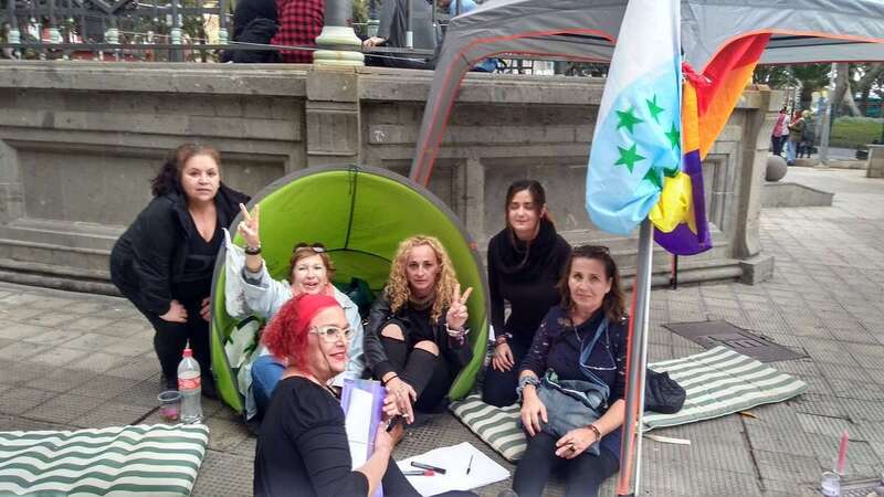Otra edil teldense, Esther González, también ha querido mostrar su apoyo a sus compañeras acampadas en la capital de España. Junto a un grupo féminas, se ha plantado con unas casetas de campaña en el Parque de San Telmo de Las Palmas de Gran Canaria.