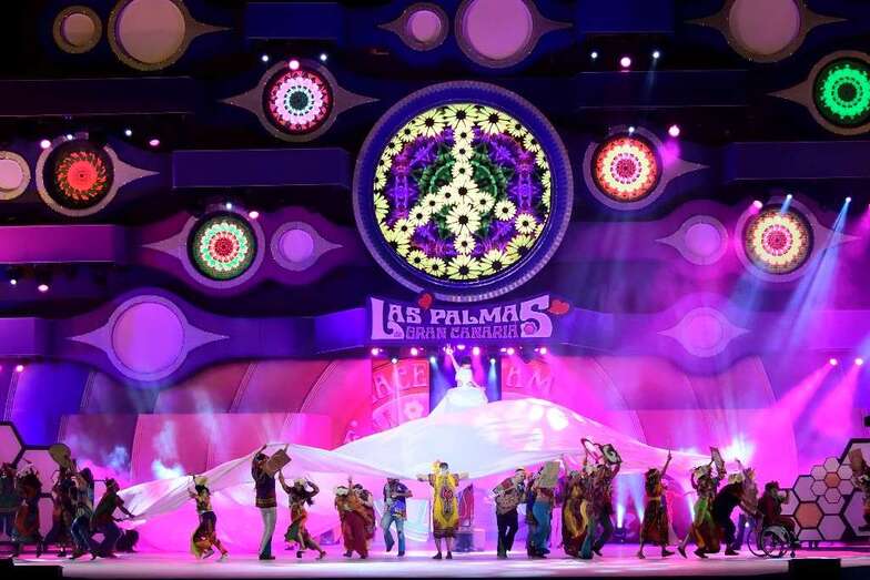 El inicio de la gala fue todo un viaje musical a la década hippie y su lema de cabecera, Paz y Amor, también retratado en la escenografía del escenario. El director artístico del espectáculo, Israel Reyes, creó una obertura con 240 figurantes, entre cantantes, bailarines y actores, y las voces en directo de Cristina Ramos (ganadora del programa Got Talent!) y Nacho Rivas, cantante de Los Salvapantallas, así como la voz narradora del actor José Carlos Campos. El vestuario creado por el equipo de Unai Tellería y la coreografía de Rubén Tenesor también jugó un importante papel en el show que precedió al esperado desfile de las candidatas.