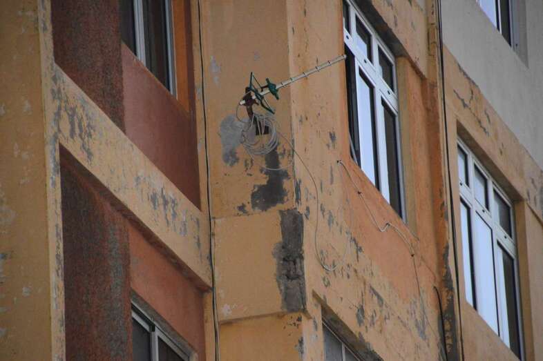 Telde.-  Llevan años esperando una solución, pero la dejadez de las administraciones eterniza su agonía. Las decenas de familias que residen en las conocidas como viviendas de Los Marinos, dos edificios construidos en Melenara en la década de los 70, ya están hartas del pasotismo de los políticos. Los bloques se caen literalmente a cachos y han iniciado una campaña de protesta.
