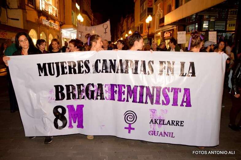 Convocada por la Red Feminista de Gran Canaria con motivo del 8 de Marzo, Día Internacional de las Mujeres, la manifestación , que arrancó con los tambores de la soRora subVersiva Batukada Feminista del Parque San Telmo, reunió a la ciudadanía en torno a las reivindicaciones que se leyeron en la llegada a la Plaza de Santa Ana, entre ellas el desigual reparto del empleo, las tareas domésticas y los cuidados, el desequilibrio ante el reparto de la riqueza, las violencias económicas y los feminicidios.