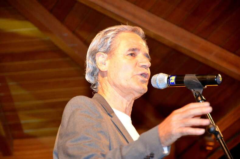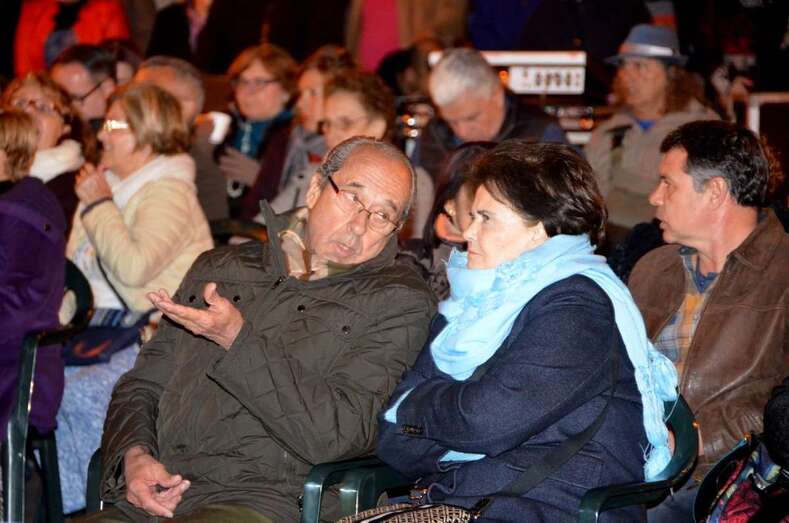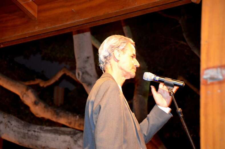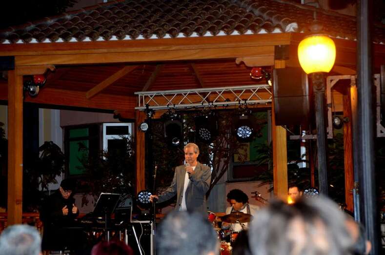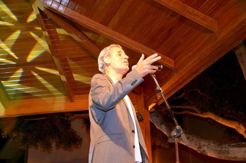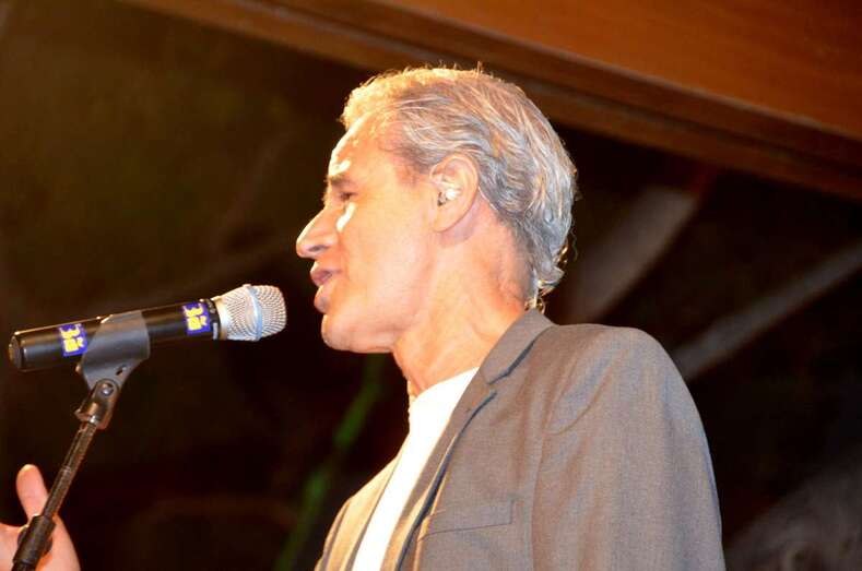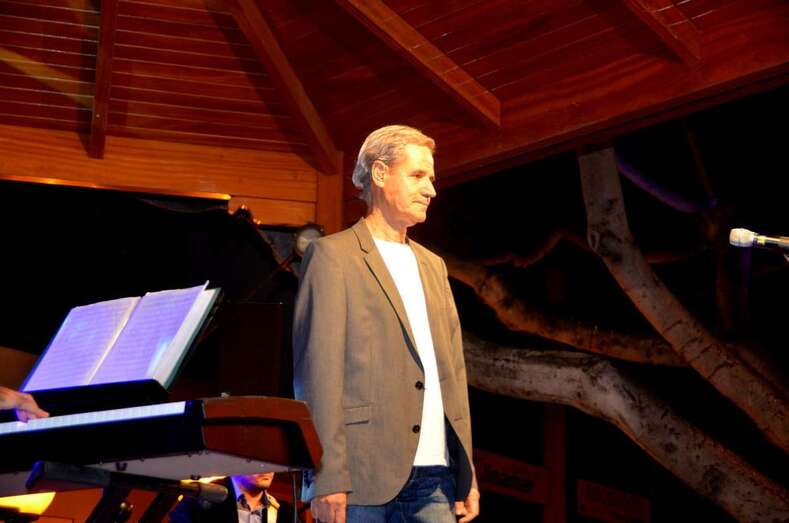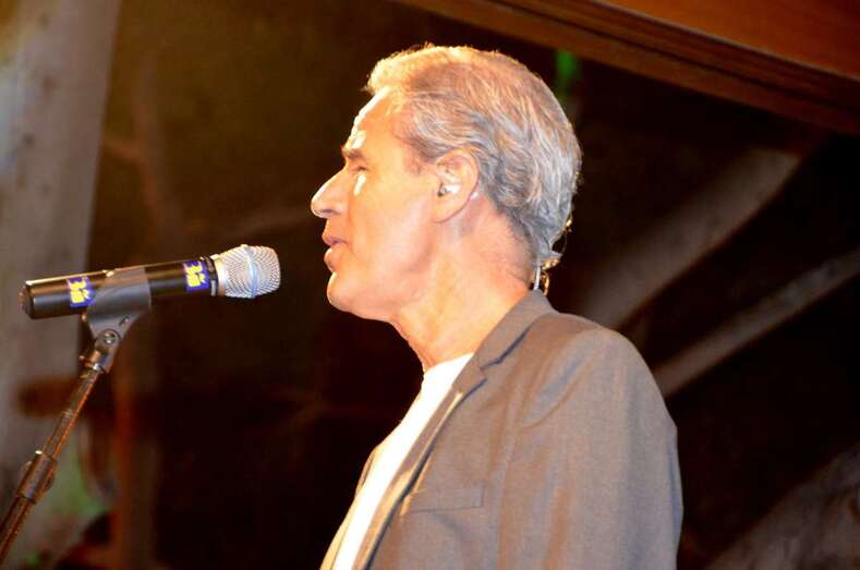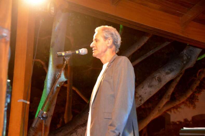 El artista palmero, que estrenaba su distinción de Hijo Adoptivo de Gran Canaria, estuvo acompañado de destacados músicos canarios como el pianista Augusto Báez, el guitarrista Carlos Martín (guitarra) y el percusionista Totó Noriega.