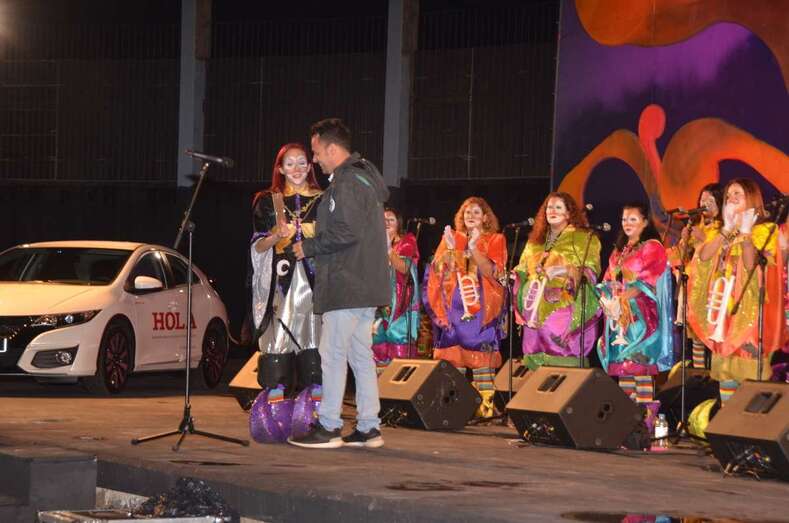 El certamen murguero comenzó con algo más de una hora de retraso, alrededor de las 21.10 horas, con la salida al escenario de la agrupación femenina tinerfeña Las Más que Locas.