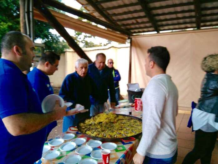 Al mediodía, la Concejalía de Festejos y la murga teldense Los Nietos de Sary Mánchez agasaron a las agrupaciones tinerfeñas con una paella en la finca El Baladero, preparada por el chef Antonio Santana, conocido popularmente como El Virula.