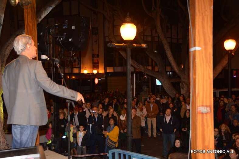 Telde.- Cientos de incondicionales de Luis Morera se dieron cita esta noche en el entorno de la plaza de Los Llanos de Telde para presenciar el concierto que ofreció el cantante palmero en el acto estelar de la iniciativa Telde cambia la hora.