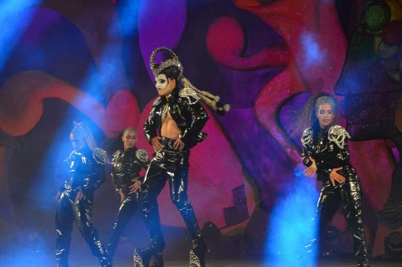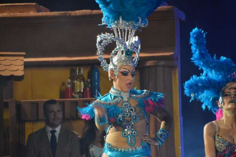 En tercer lugar quedó Norma Ruiz Brito, Drag Noa, con la fantasía ¡¡Arriba Mari...neros!!, obra de Manuel Encinoso y Begoña Pérez, que intervino en la gala en representación de Grúas Serafín.