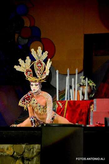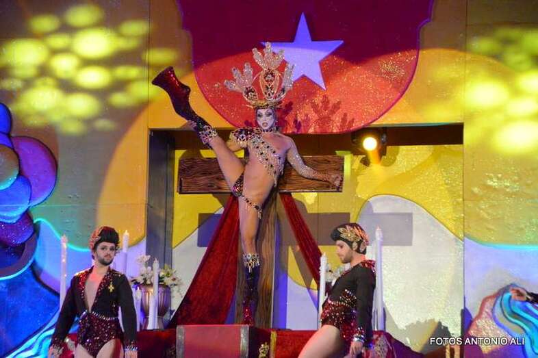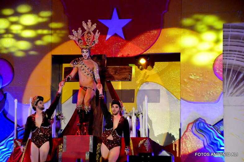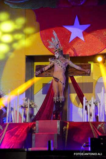 Telde.- Sethlas lo volvió a hacer. El joven Borja Casillas protagonizó anoche uno de los momentos estelares de la Gala Drag Queen del Carnaval de Telde con su polémico espectáculo en el que encarna a una Virgen y a un Jesucristo crucificado.