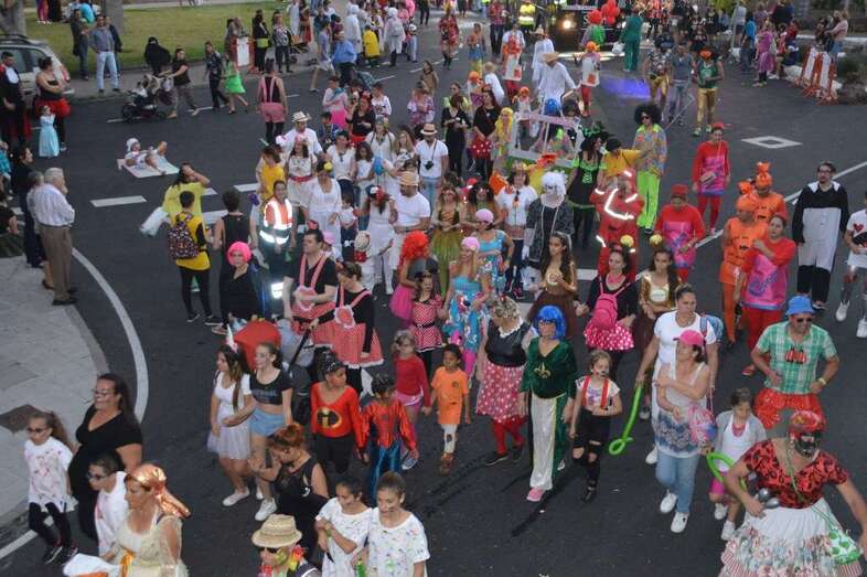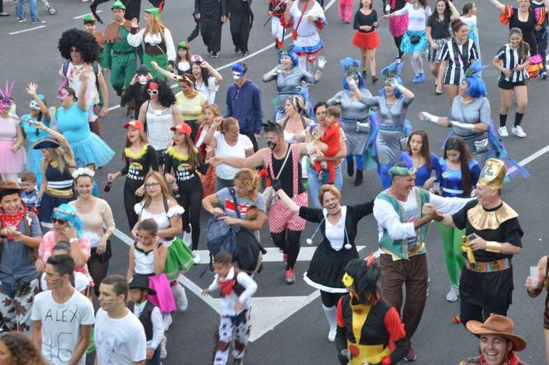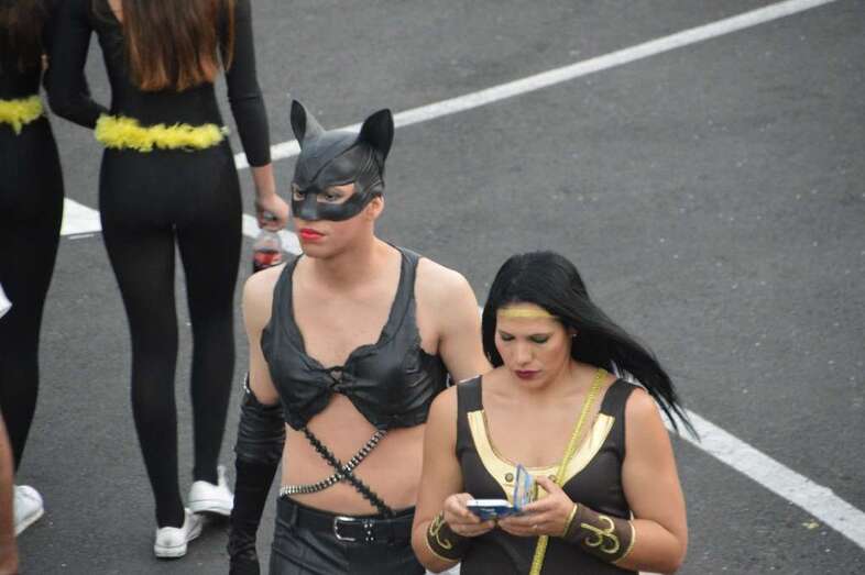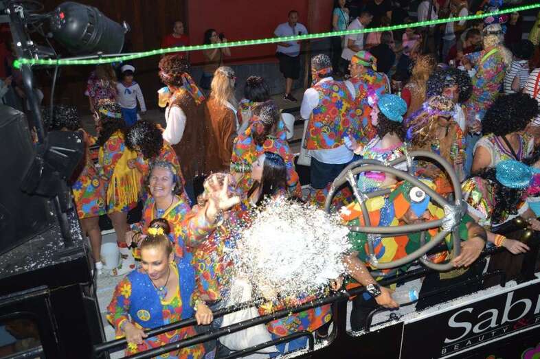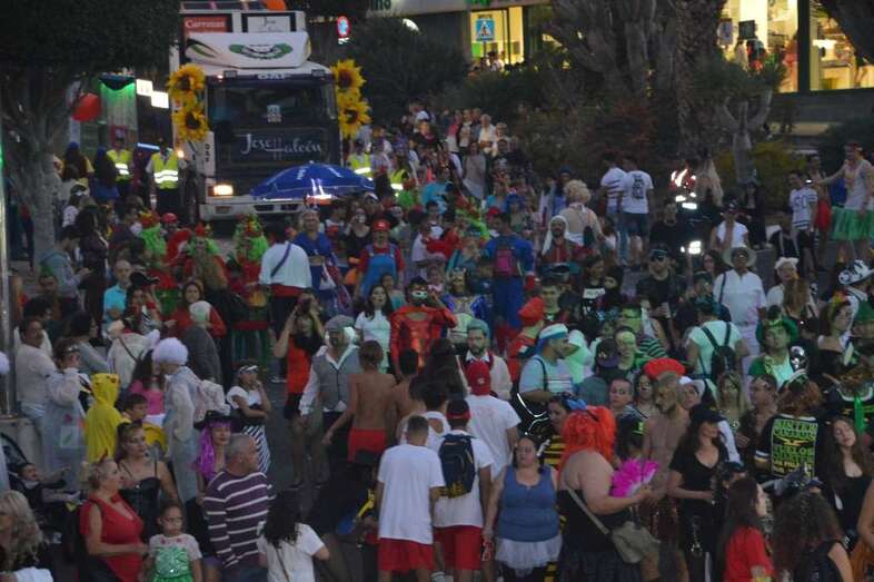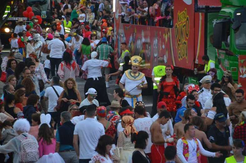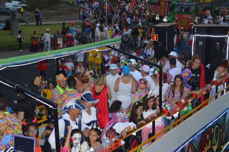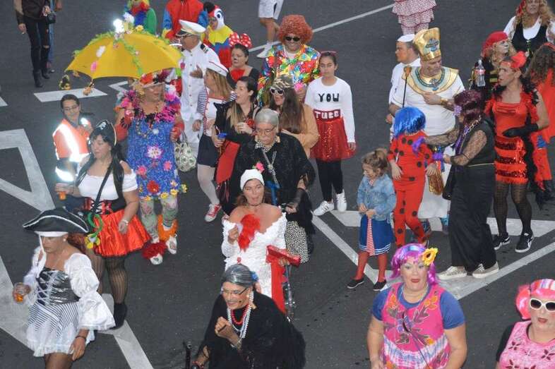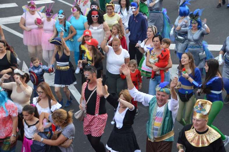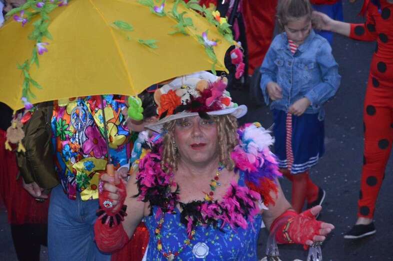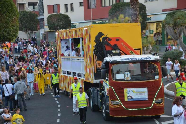 Telde.- La Cabalgata del Carnaval de Telde ya inunda de alegría, colorido y ritmos latinos las calles del casco de la ciudad. La comitiva, en la que participan 35 carrozas, batucadas, comparsas, murgas, drags y cientos de mascaritas, se abre camino desde hace unos minutos, en una calurosa tarde, en dirección hacia la plaza de San Juan.