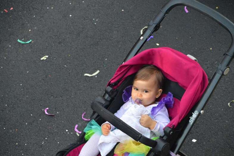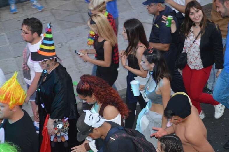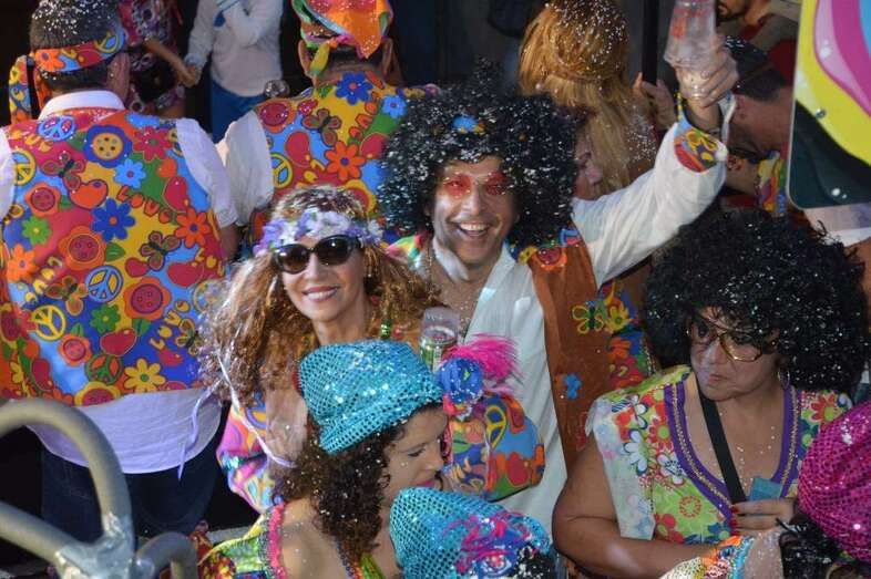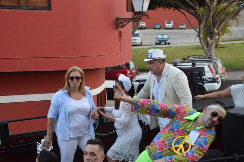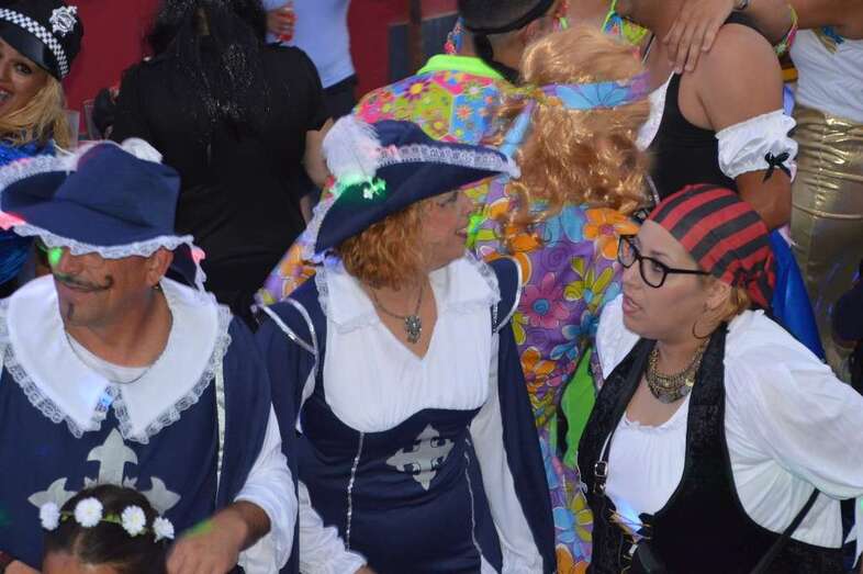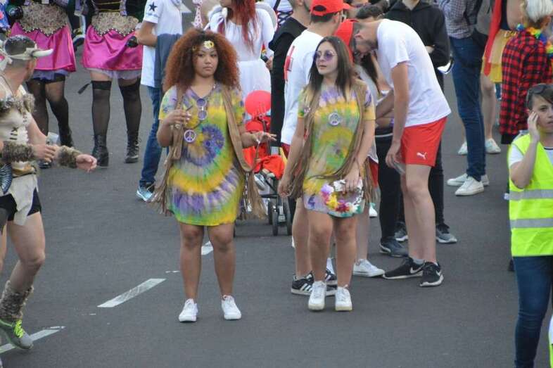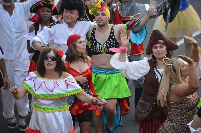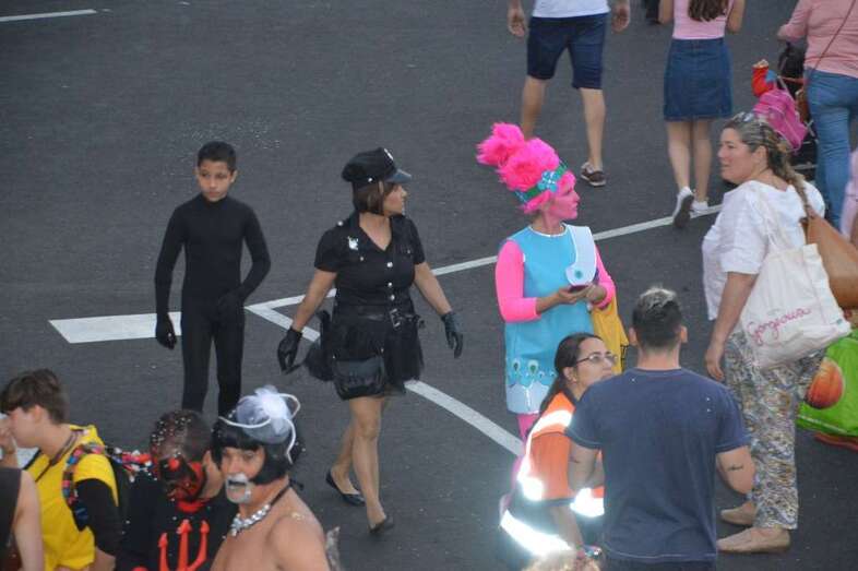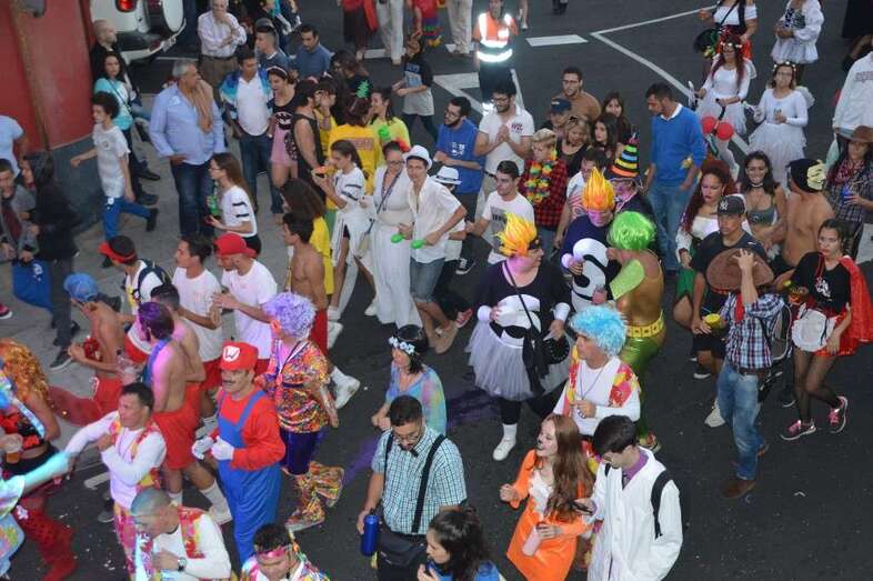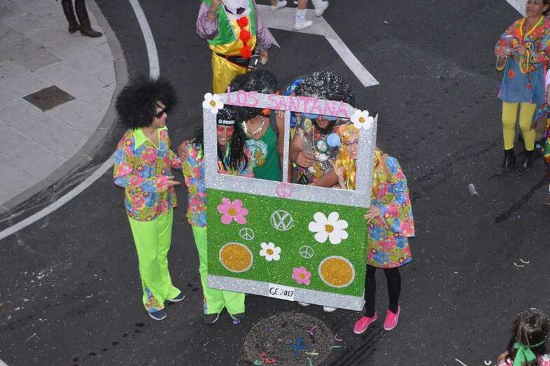 Telde.- La Cabalgata del Carnaval de Telde ya inunda de alegría, colorido y ritmos latinos las calles del casco de la ciudad. La comitiva, en la que participan 35 carrozas, batucadas, comparsas, murgas, drags y cientos de mascaritas, se abre camino desde hace unos minutos, en una calurosa tarde, en dirección hacia la plaza de San Juan.