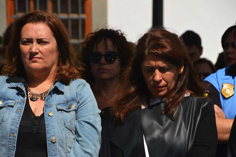 La Corporación local guardó un minuto de silencio en memoria de Yurena. Un acto al que asistieron representantes políticos de prácticamente todas las formaciones con representación en el Ayuntamiento de Telde, así como la diputada regional Guadalupe González Taño, el jefe de la Policía Local, Félix Ramos, y el comisario de la Policía Nacional en el municipio, Jesús García Aller, agentes de ambos cuerpos de seguridad, trabajadores municipales, vecinos, el cura-párroco de la Basílica de San Juan, José María Cabrera; y el abuelo materno de la joven asesinada, Salvador Henríquez López.