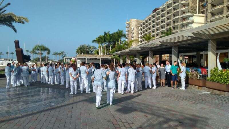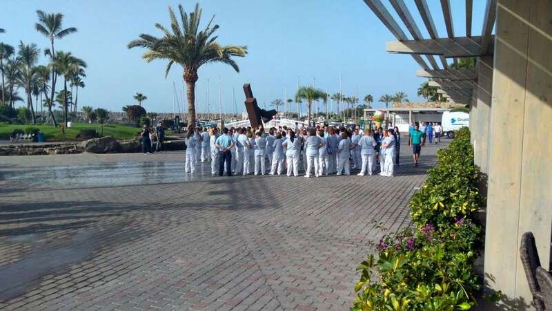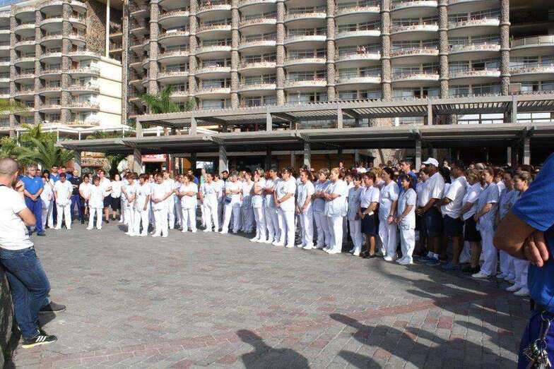 A las 10.00 horas, la plantilla al completo del complejo hotelero del Grupo Anfi en el que Yurena López trabajó durante unos meses, y al que este lunes después se debía reincorporar como camarera de piso, se concentró a las puertas del hotel, en Anfi del Mar (Mogán).
