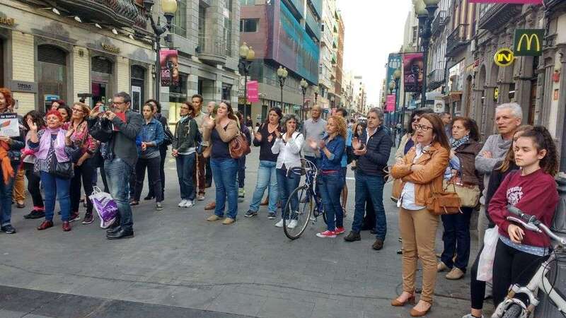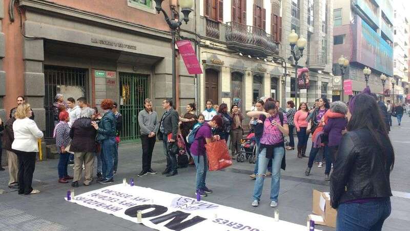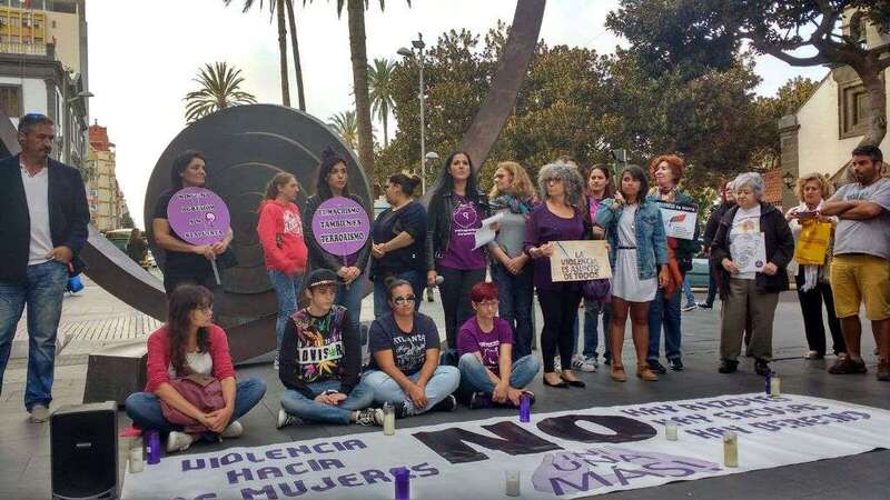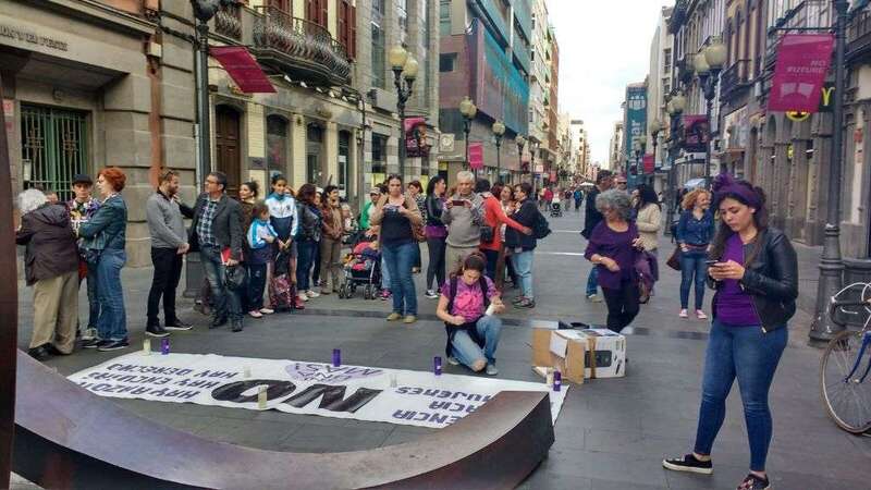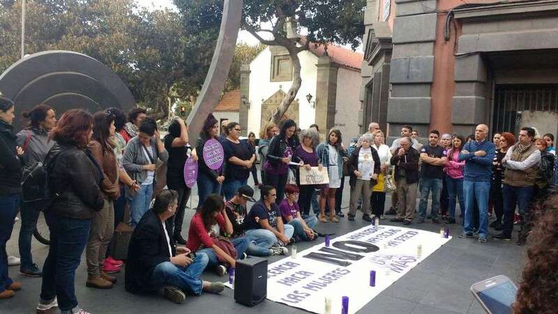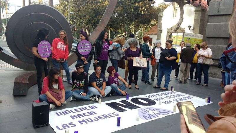 Una hora antes, a las 19.00 horas, la Red Feminista de Gran Canaria convocaba a la sociedad grancanaria a una movilización ante el monumento de Chirino, en la calle de Triana, acto al que asistieron conocidas militantes feministas y ediles del Ayuntamiento de Telde.