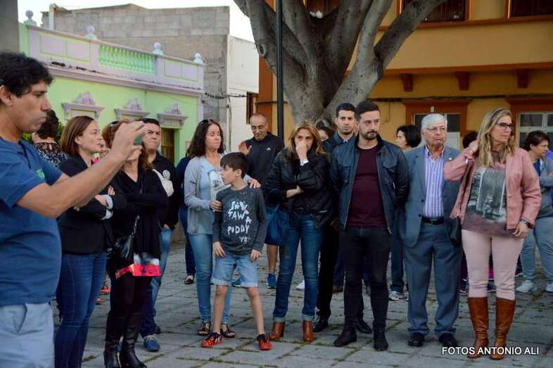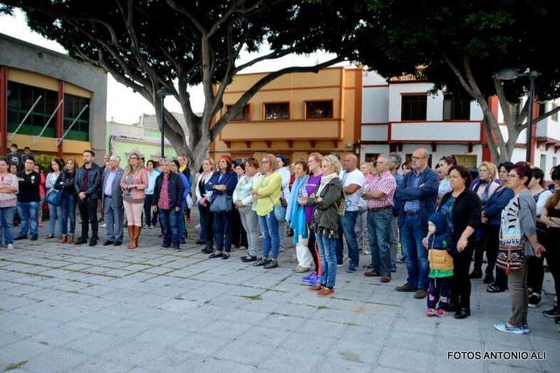 Decenas de personas, entre ellos varios concejales del Ayuntamiento de Telde y la consejera María Nebot, se concentraban esta tarde-noche (20.00 horas) en la plaza de Las Nieves, en el pago de Lomo Magullo, respondiendo a la llamada del colectivo vecinal La Talla. Ahí guardaban un minuto de respeto en señal de respeto y pesar por el presunto crimen machista que Ayoze R. Gil, vecino de este barrio del que era natural y en el que residía junto a Yurena L., habría cometido no muy lejos del pueblo, en una finca del Llano de La Palma.