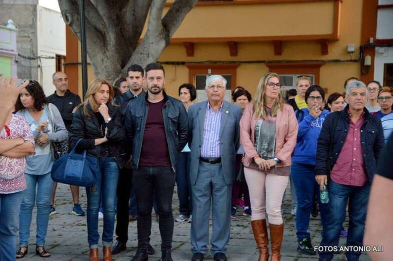Miembros de diferentes partidos políticos de Telde, la consejera de Igualdad del Cabildo de Gran Canaria, María Jesús Nebot; y vecinos del barrio y de otros puntos de la ciudad, pequeños y adultos, participaron en la concentración. (Noticia ampliada a las 20.27 horas)