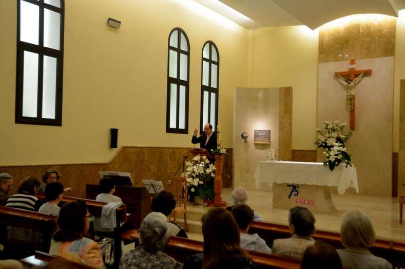 El también párroco de la Iglesia de Santa Catalina de Alejandría, glosó en su intervención diferentes aspectos sobre la devoción a María Auxiliadora, hablando de sus orígenes y de su presencia en España y, más particularmente, en Gran Canaria.