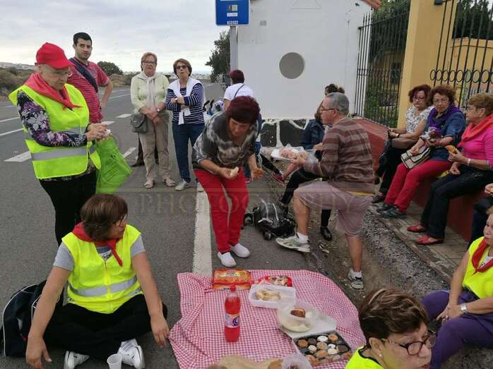 La caminata partió del local social de la calle de El Roque, sito en el sector de Los Llanos, y finalizó en la citada Cruz, engalanada para la ocasión por vecinos del núcleo poblacional del entorno.