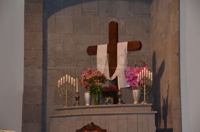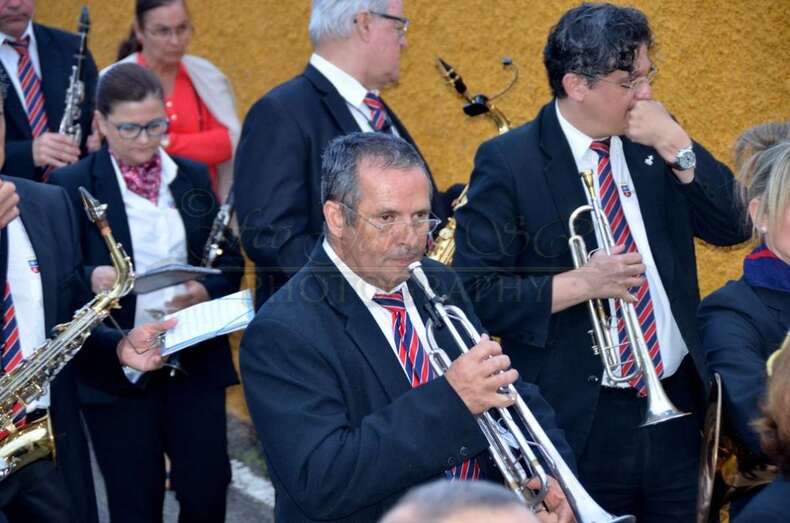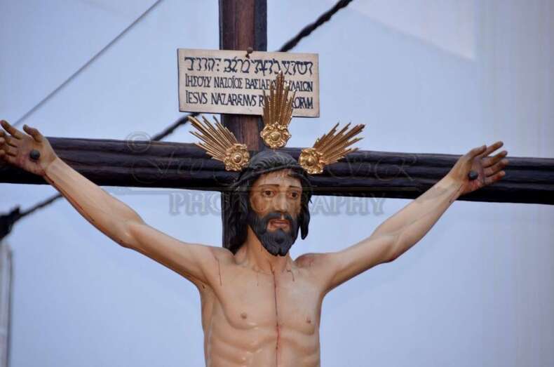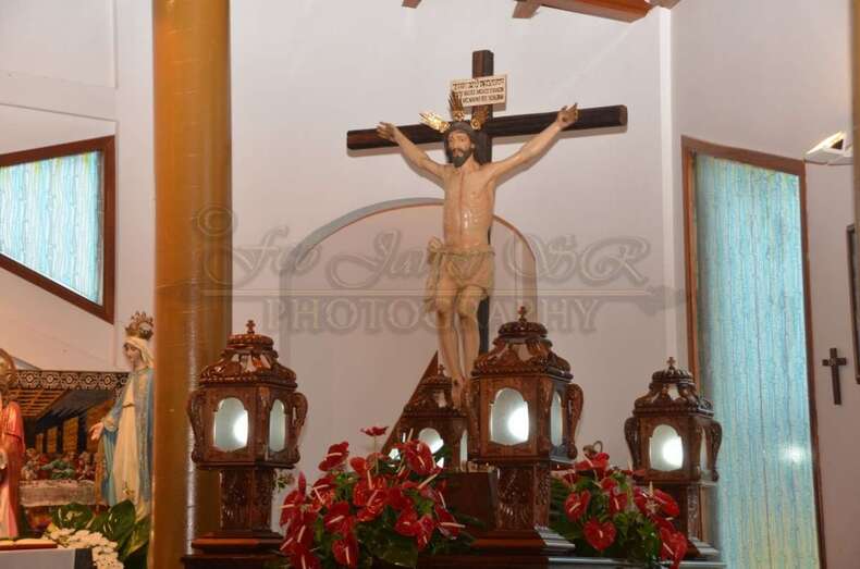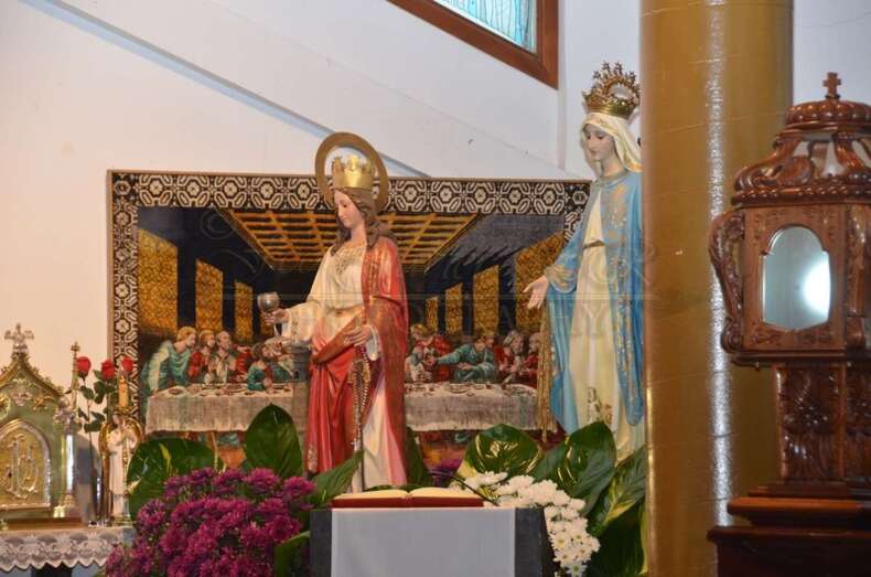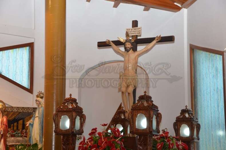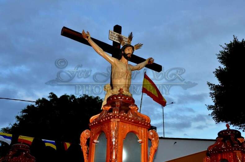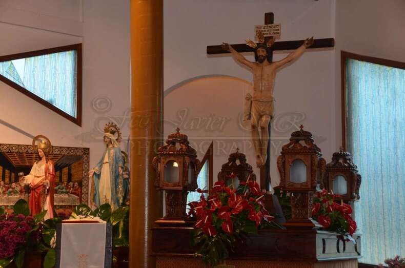 Los tronos de la Santa Cruz, Santa Bárbara y Santísimo Cristo del Perdón estuvieron acompañados por un grupo de feligreses, autoridades públicas y la Banda Municipal de Telde.