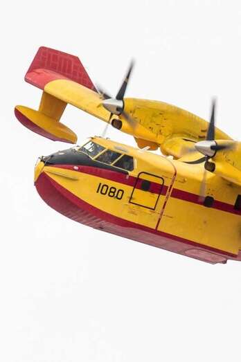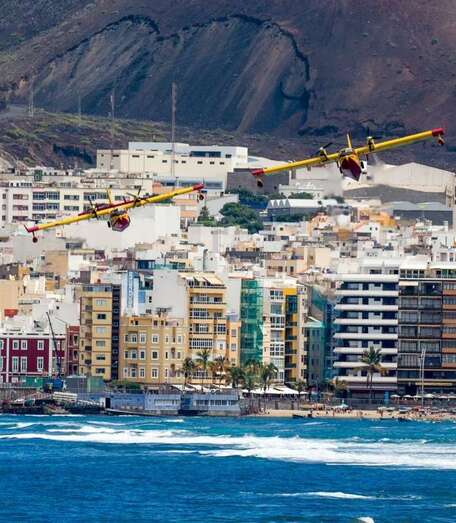 No se alarme si esta semana ve sobrevolar la Isla o aterrizar y despegar desde el Aeropuerto de Gran Canaria a dos llamativos aviones amarillos, con la panza y parte del fuselaje teñido de rojo, y de morros abultados similares a los de una foca. No se trata de ninguna emergencia, sino de dos de las aeronaves contraincendios (Canadair CL-215) del 43 Grupo de Fuerzas Aéreas, una unidad del Ejército del Aire especializada en la extinción de fuegos forestales y cuyas tripulaciones se adiestran estos días en Canarias.