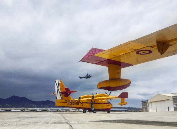 A lo largo de esta semana trabajarán codo a codo con el personal de la Unidad Militar de Emergencias (UME), efectuando diversos ejercicios de entrenamiento como aproximaciones y cargas de agua en tierra. Y también aprovecharán su despliegue en la Base Aérea de Gando para reconocer los puntos de carga más propicios que existen en las costas del Archipiélago y realizar estudios en función de las condiciones de viento, el estado del mar y su distancia desde las principales masas forestales de Canarias.