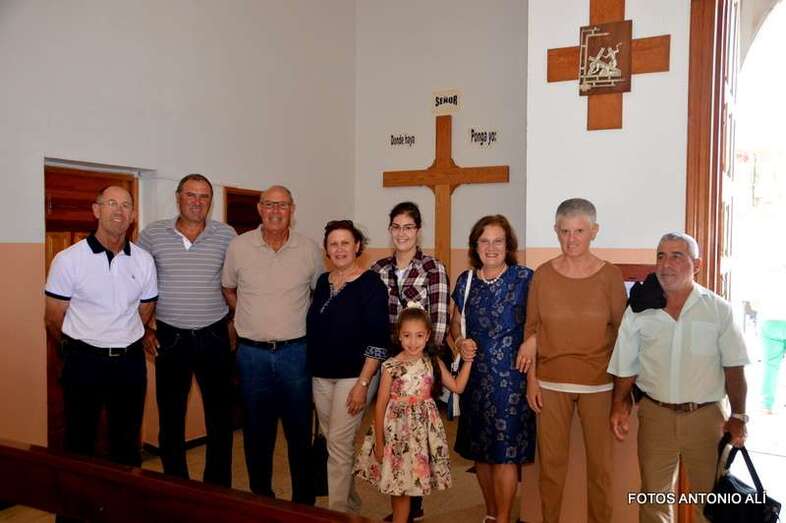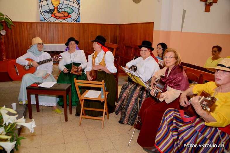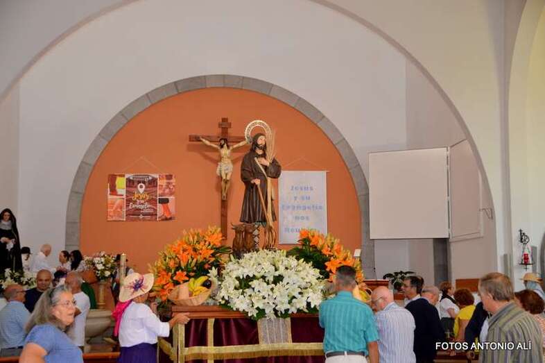 Tras la eucaristía canaria celebrada en el templo, la comitiva religiosa inició el recorrido de costumbre por la calle principal, Raimundo Lulio. La imagen de San Isidro Labrador, engalanada con flores en tonos blancos y naranjas, enfiló la rampa de salida de la parroquia y fue recibida por vecinos y feligreses, algunos atraviados con la vestimenta típica canaria, y autoridades municipales.