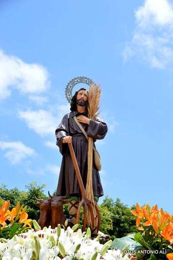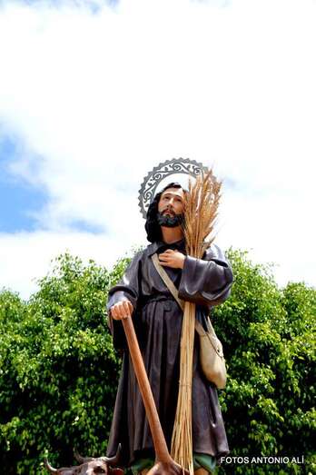 La imagen de San Isidro Labrador, a la salida del tempo por la calle de Raimundo Lulio (Foto Antonio Alí) La imagen de San Isidro Labrador, a la salida del tempo por la calle de Raimundo Lulio (Foto Antonio Alí)