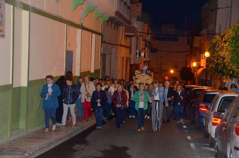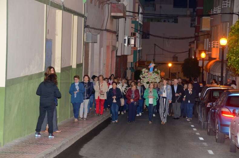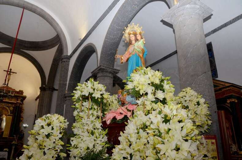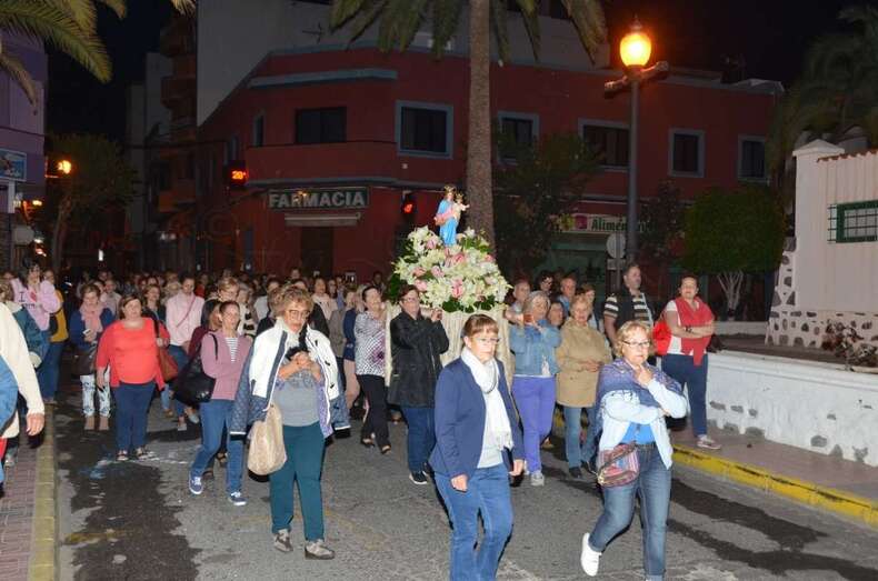 Cuando aún los primeros rayos de luz no habían despertado a la ciudad, más de un centenar de devotos acompañó a la imagen mariana en el tradicional Rosario de la Aurora desde el colegio salesiano de Telde hasta el templo neoclásico de Los Llanos, en donde tuvo lucar la primera misa del día.