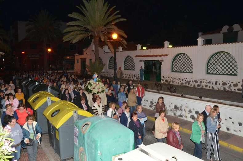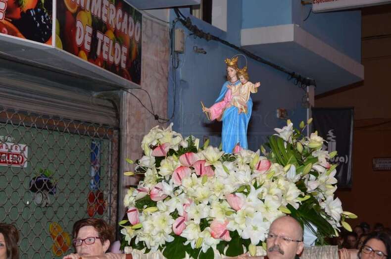 La comitiva partió minutos después de las 06.30 horas del centro escolar para recorrer las calles de María Auxiliadora, Navarra, Picachos, Betancor Fabelo y Juan Diego de la Fuente, y desembocar en la Iglesia de San Gregorio, en donde ya se encuentra engalanada la otra imagen de la Virgen que esta tarde procesionará por las calles del núcleo comercial de Telde arropada por cientos de fieles.