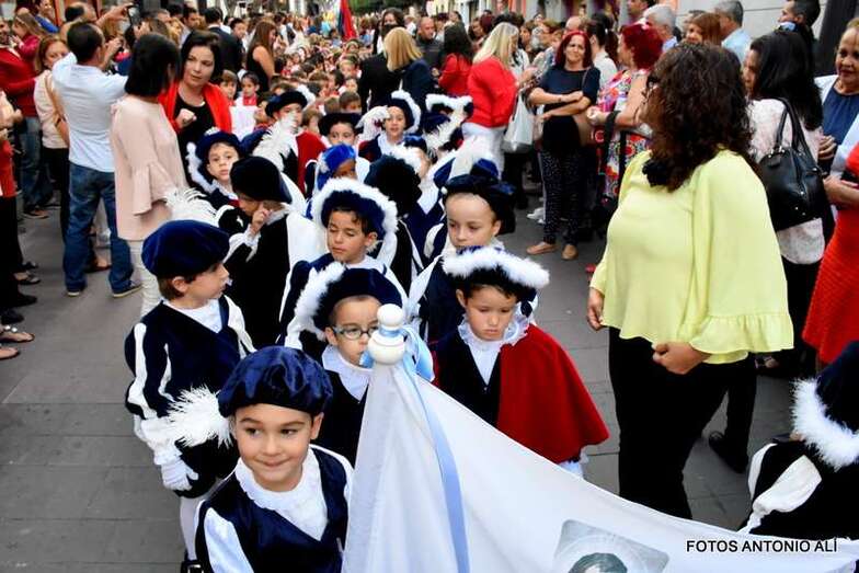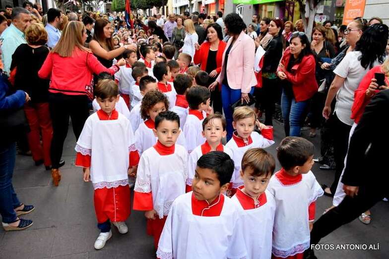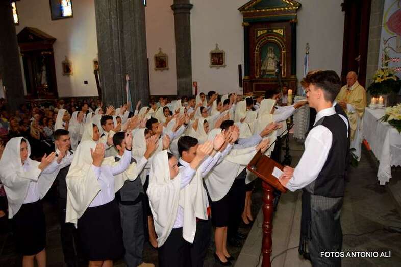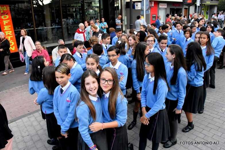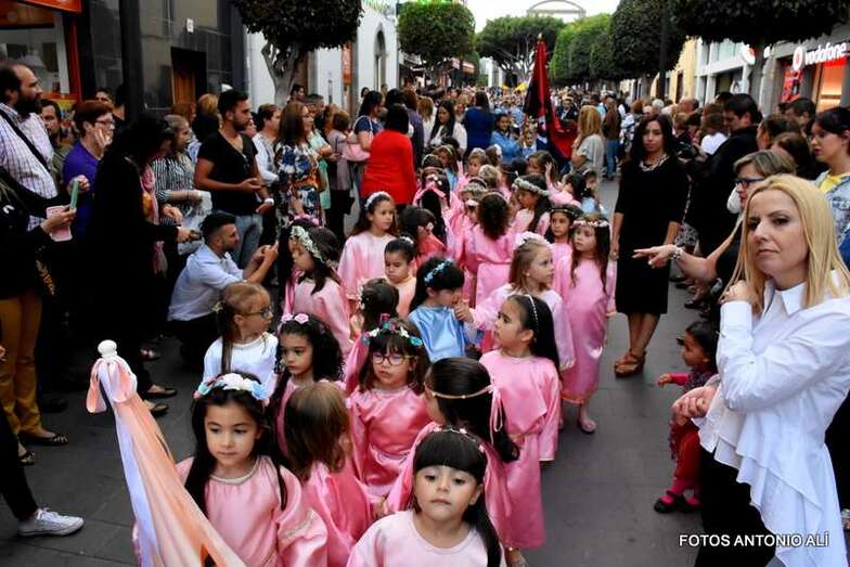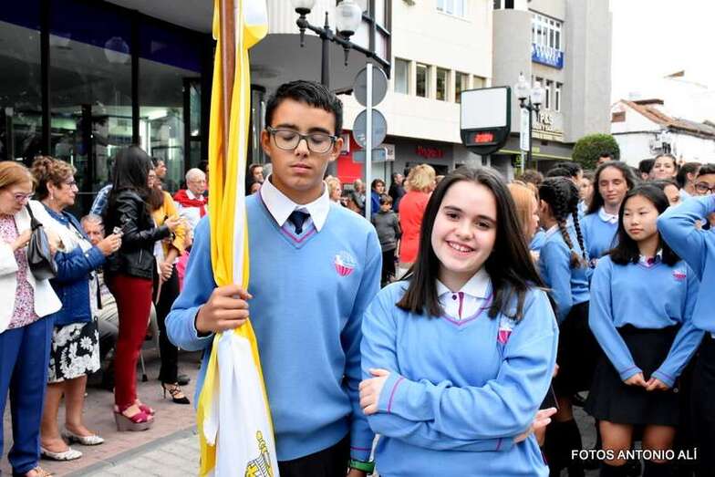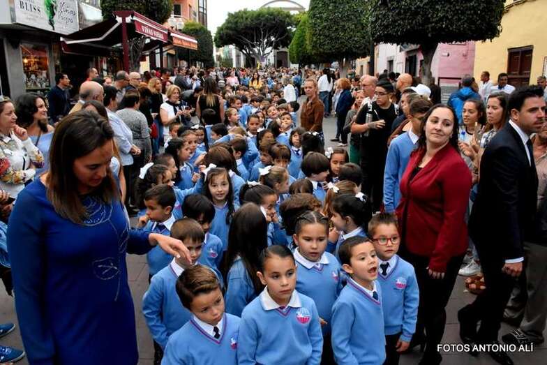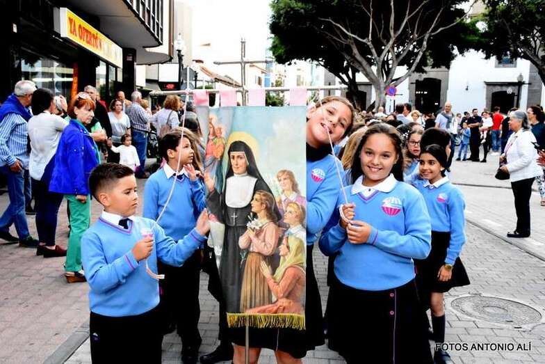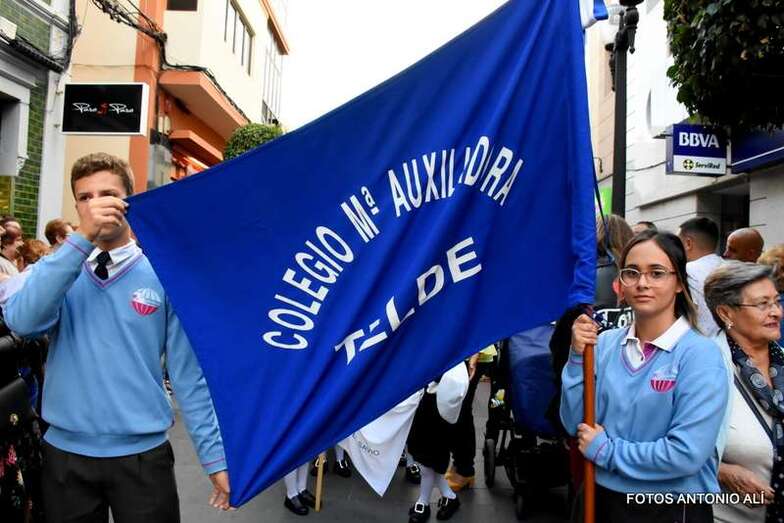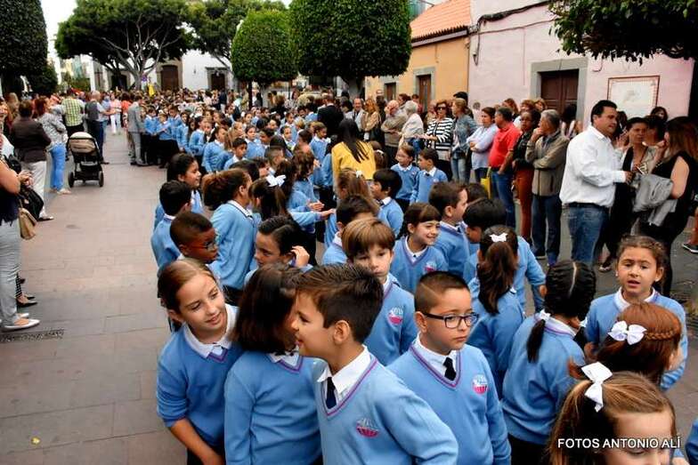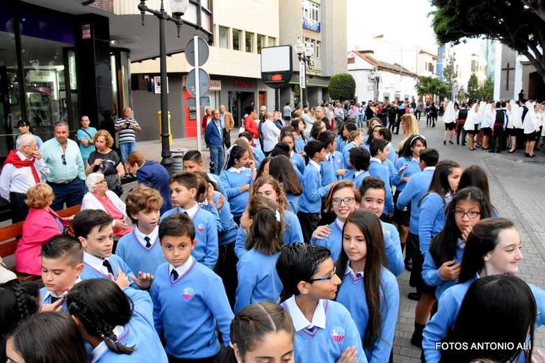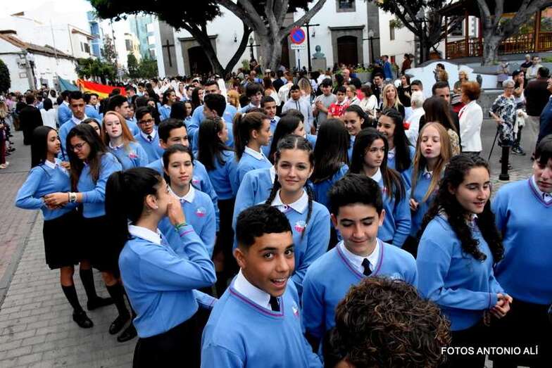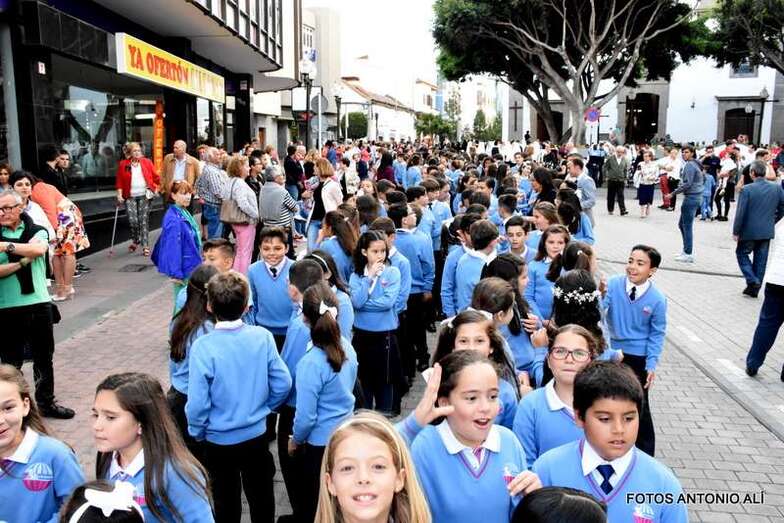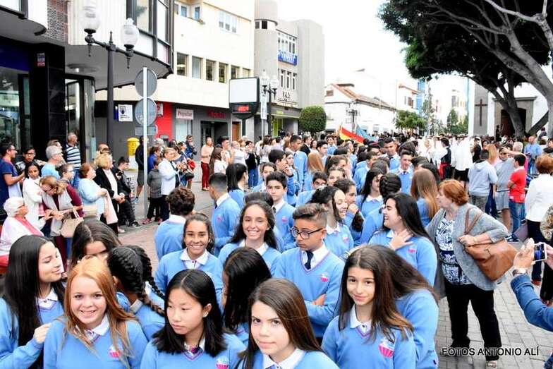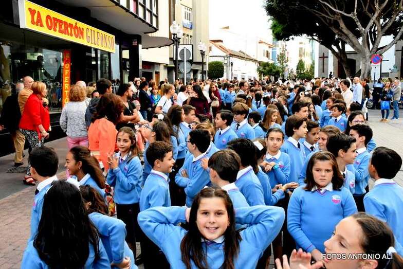 La tarde, con una temperatura agradable, ayudó y cientos de teldenses, familiares de los alumnos y también antiguos estudiantes del centro, no quisieron perderse el desfile religioso.