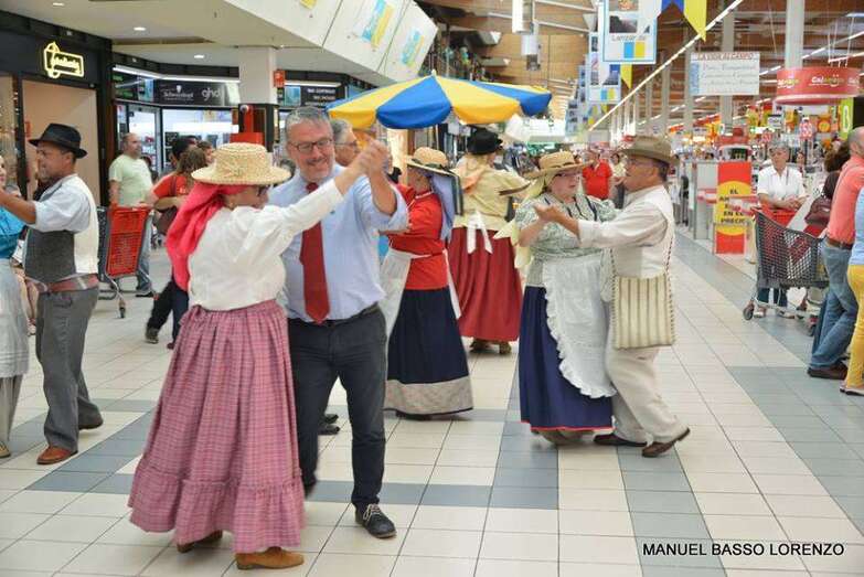 Telde.- Como cada año, el Grupo de Baile de la Asociación de Vecinos Cristo de Telde acudió al Centro Comercial Alcampo para amenizar una tarde de compras y colaborar, junto con su clientela, en la celebración del Día de Canarias. TA ofrece reportaje gráfico.